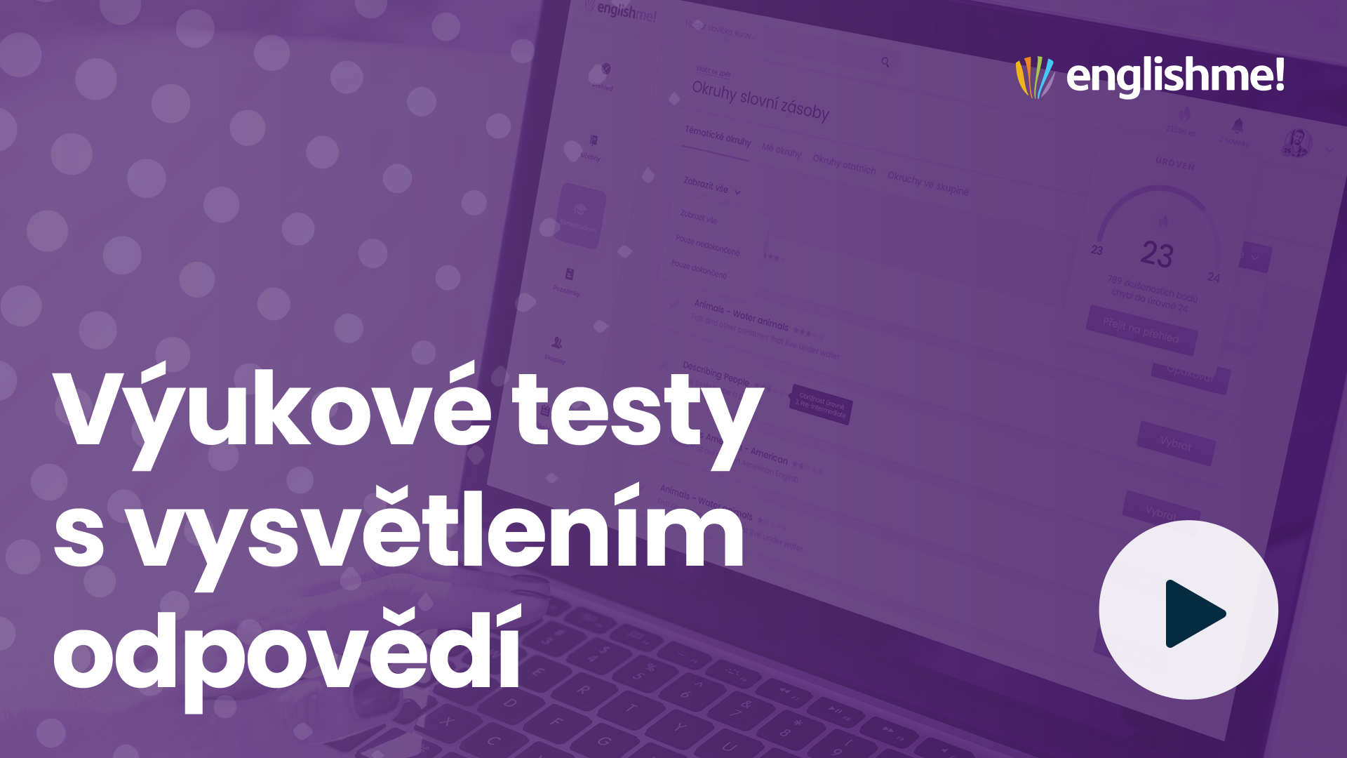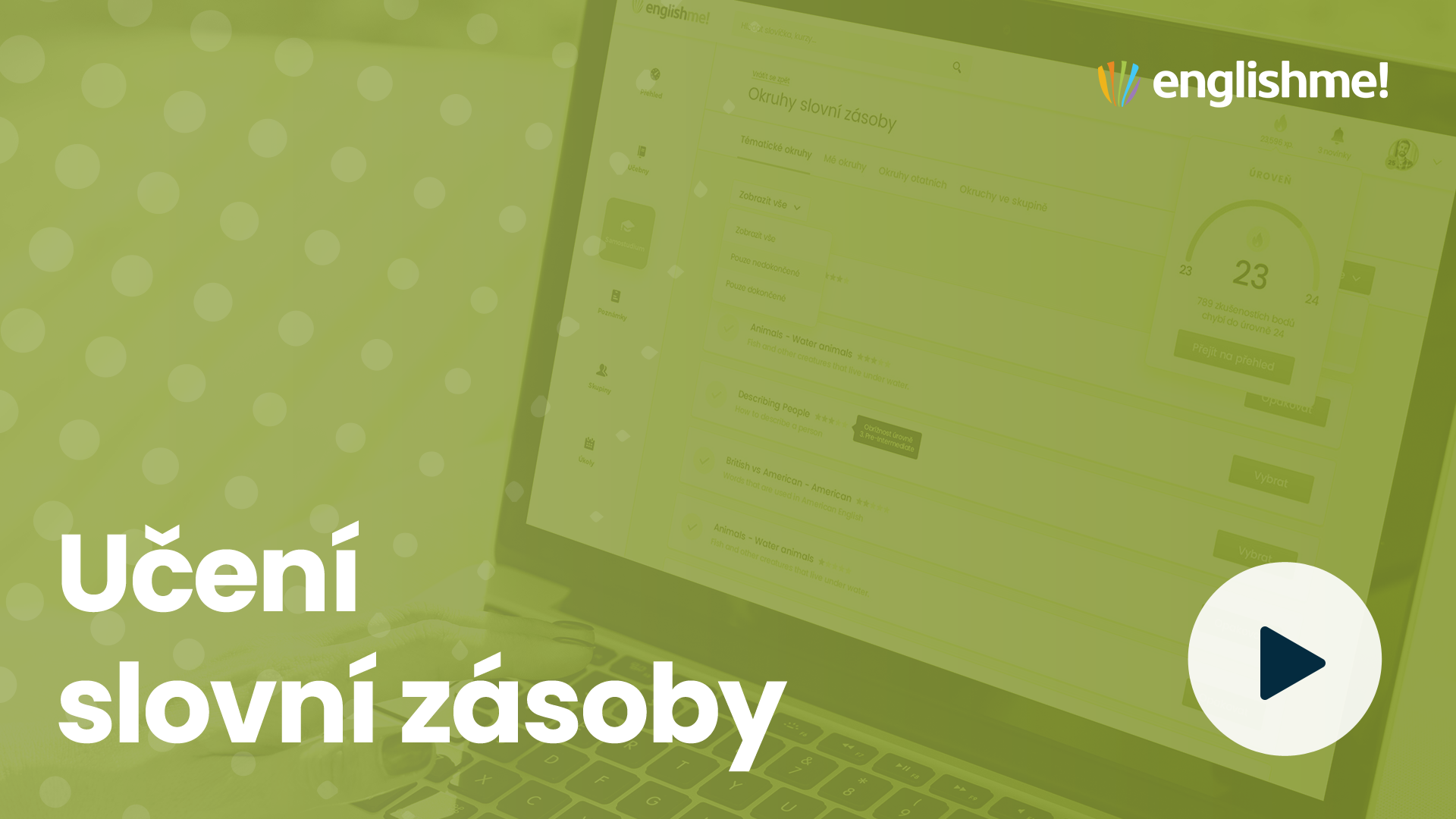 7 dní zdarma? RozhodněWeb Englishme! používám už dlouho a nejvíc oceňuji to, že se neustále vyvíjí, jeho tvůrci na něm pořád pracují, vylepšují a doplňují obsah. Tím pádem si každý může zvolit individuální přístup ke studiu tak, aby mu plně vyhovoval. Nejde také pouze o učebnicovou angličtinu, ale o snahu co nejvíc se přiblížit použití v reálných situacích.