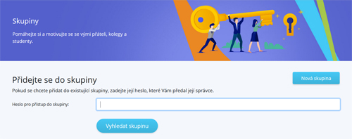 Členové (žáci, studenti apod.) se do skupiny přihlašují také na stránce Skupiny. Kód, který obdrželi od správce skupiny zadají zde v části Přidejte se do skupiny.