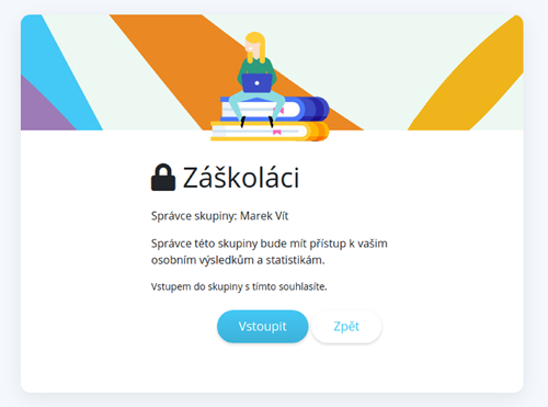 Po vložení kódu si zkontrolujte, že vstupujete do té správné skupiny (zobrazí se její název a jméno správce skupiny/učitele)